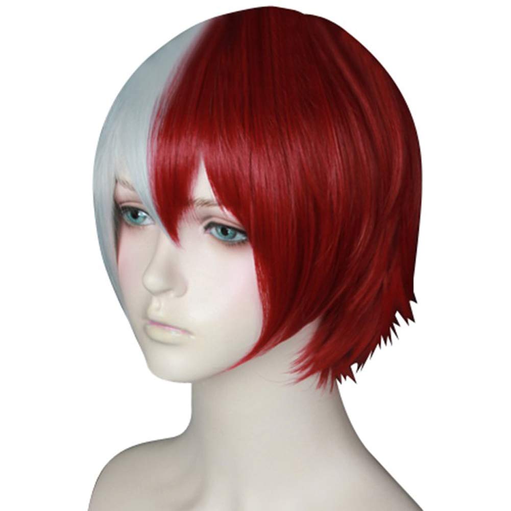 Anogol Hair Cap Half Red Half White Wig Split Color Wigs Short Red Cosplay Wig Short White Wig For Cosplay Costume Synthetic Hair Half Color Wig Mixed Color Costume Wig For